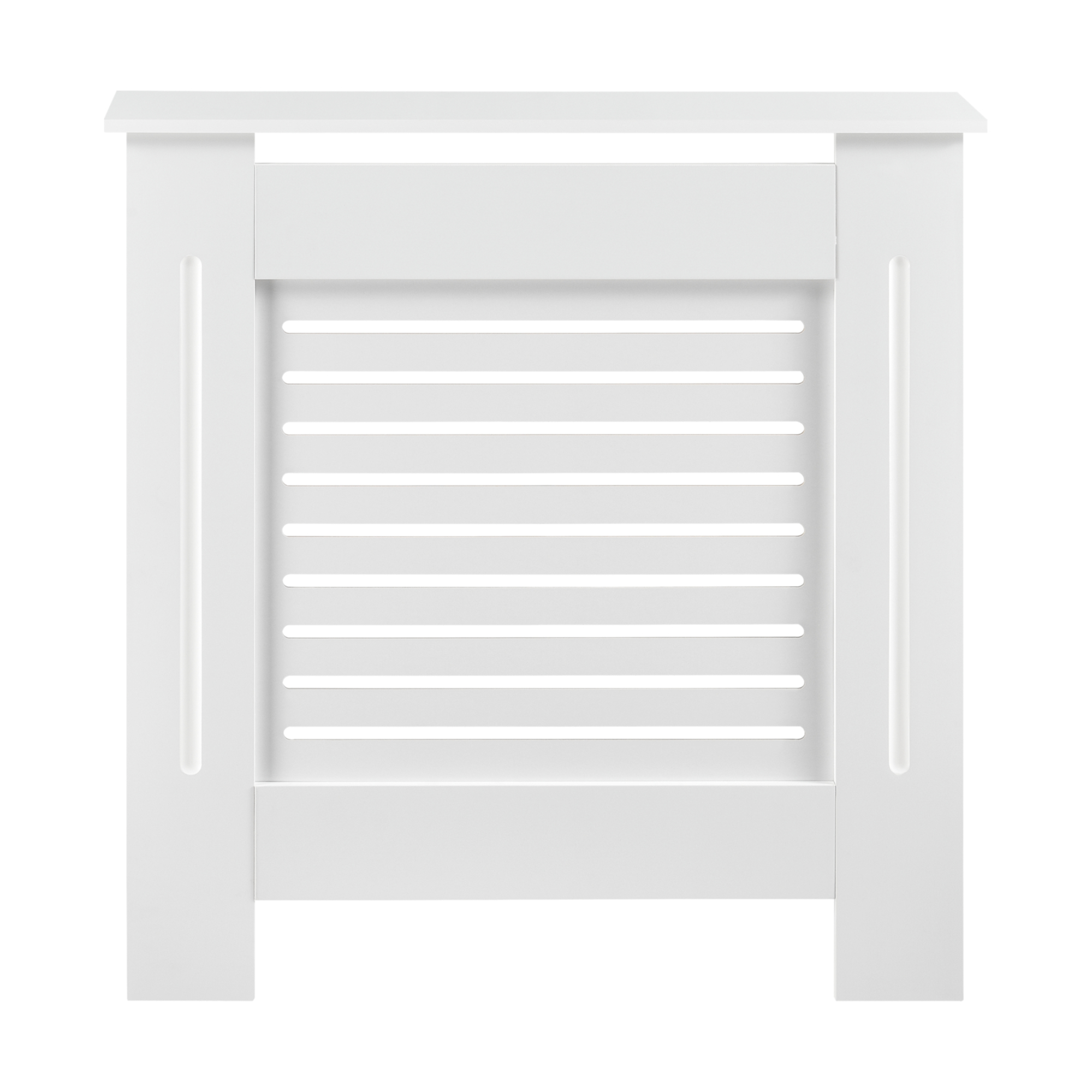 Die praktische und dekorative Heizkörperabdeckung mit Lamellenoptik lässt sich schnell und einfach an der Wand befestigen. Sie verbirgt unansehnliche Heizkörper und bietet zusätzlich eine Ablagemöglichkeit auf der Heizung.