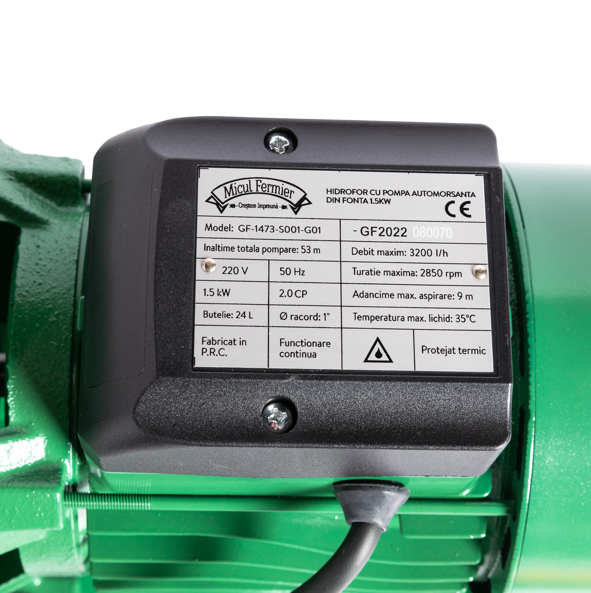 Hidrofor cu pompa autoamorsanta din fonta 1,5 kW, Micul Fermier, GF-1473-S001-G01 are urmatoarele caracteristici: