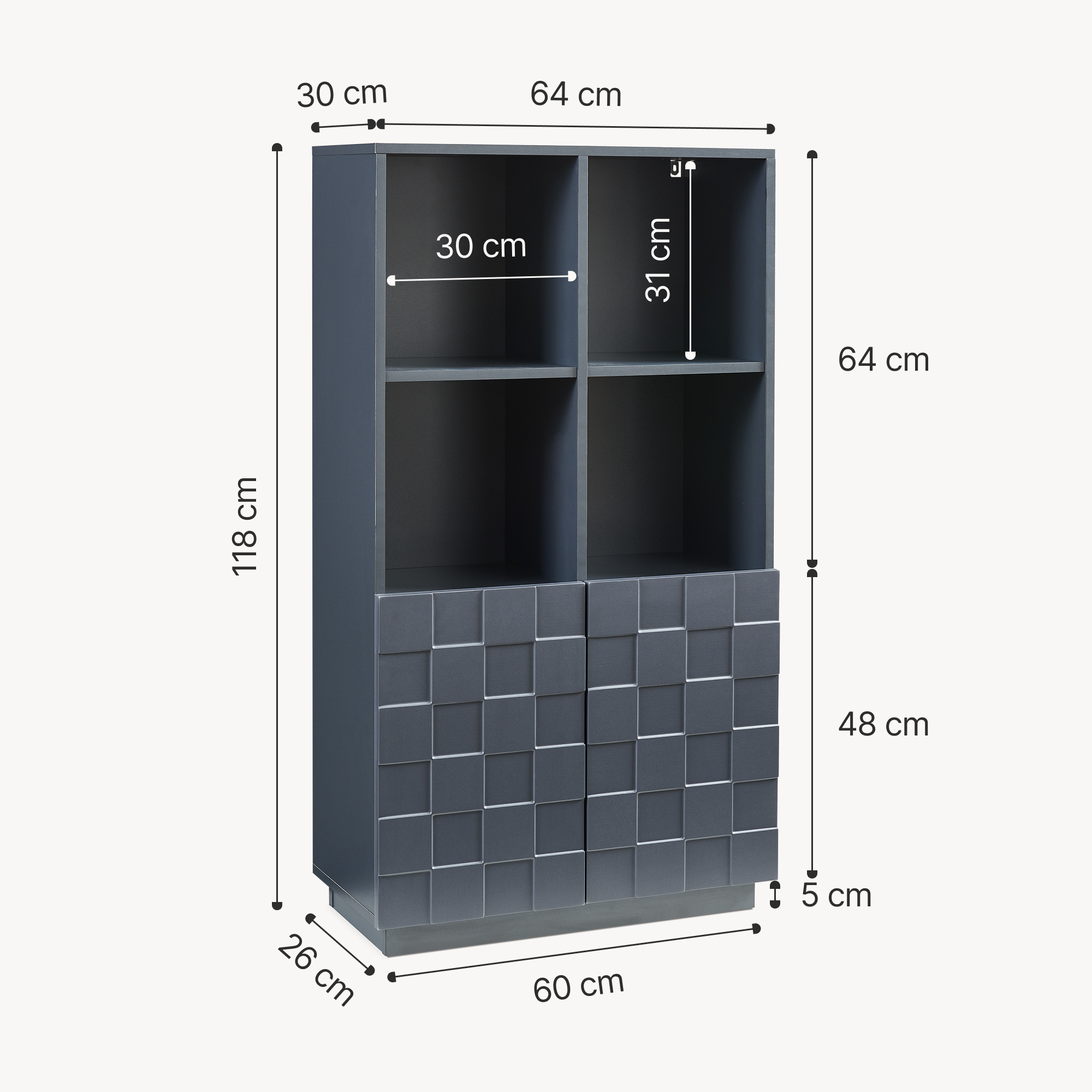 - Gesamt (HxBxT): 118 x 64 x 30 cm