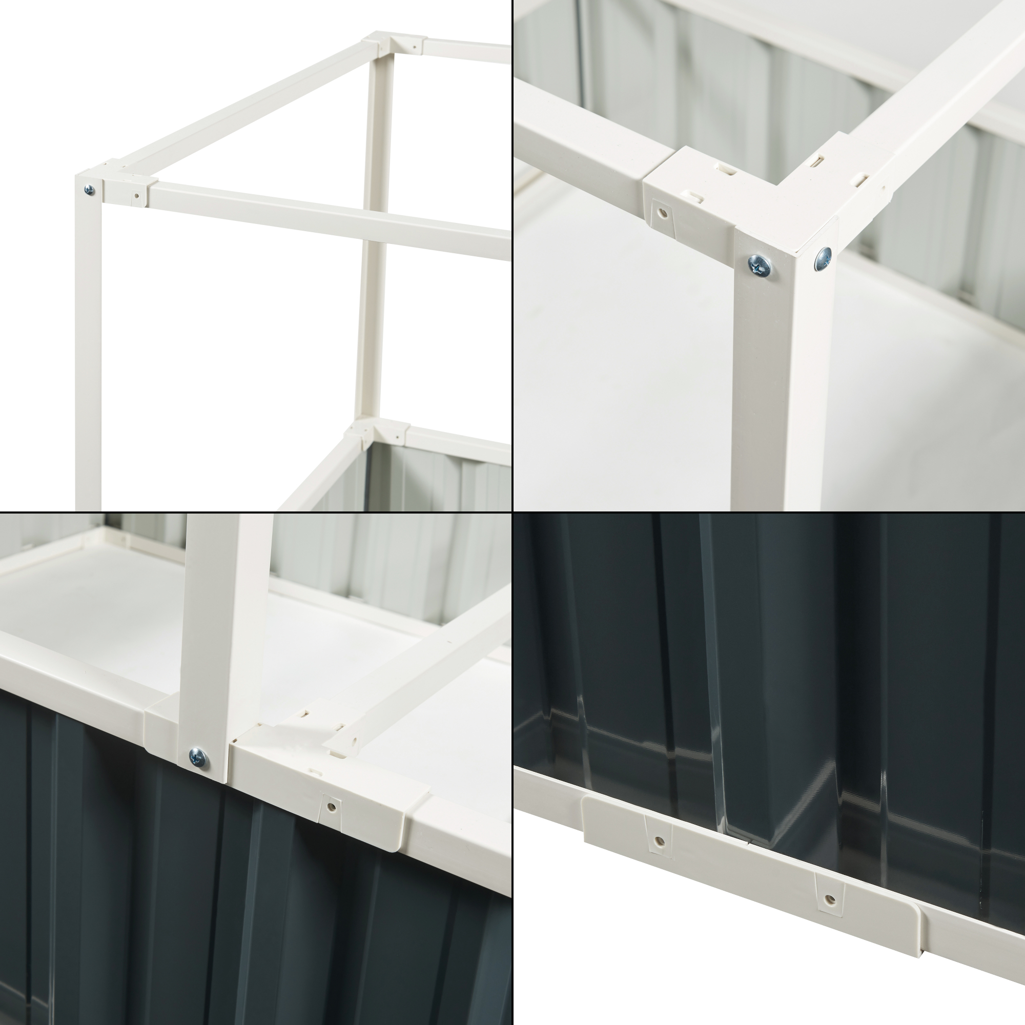 Der hochwertige und langlebige Pflanzkasten ist hergestellt aus verzinktem Stahl. Seine Witterungsbeständigkeit macht ihn zu einem dauerhaften Mittelpunkt in Ihrem Garten, auf den Sie sich verlassen können.