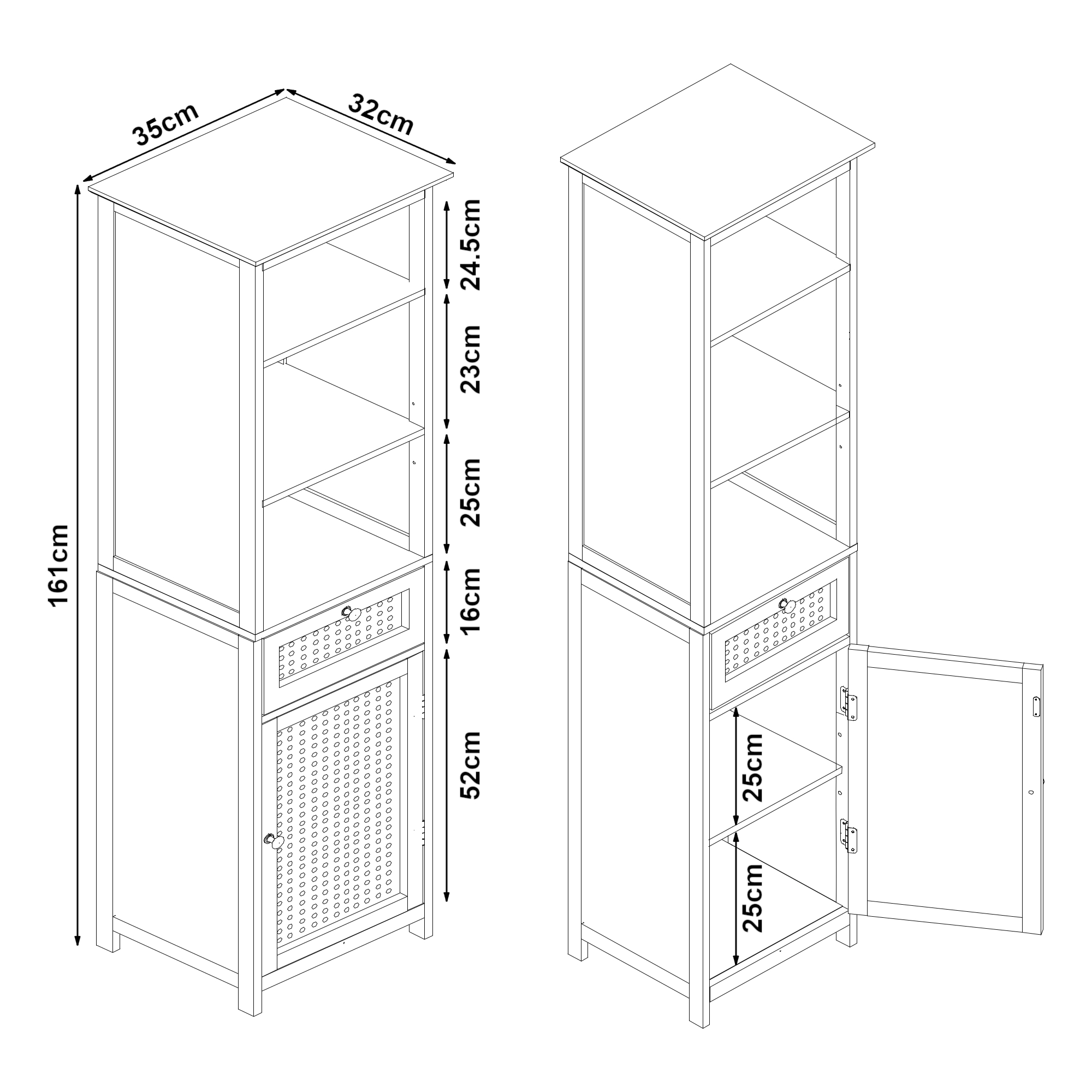 - Gesamt (HxBxT): 161 x 35 x 32 cm