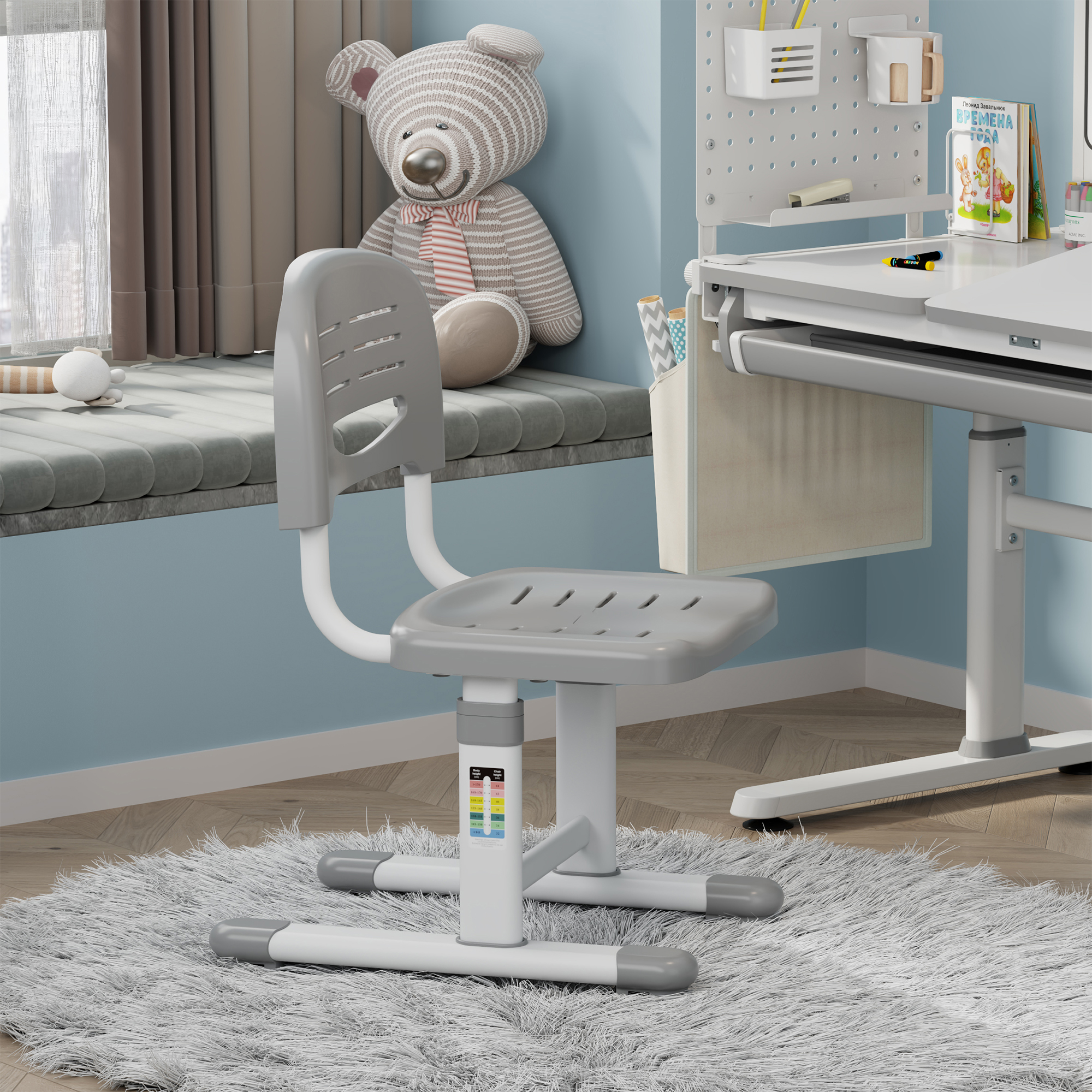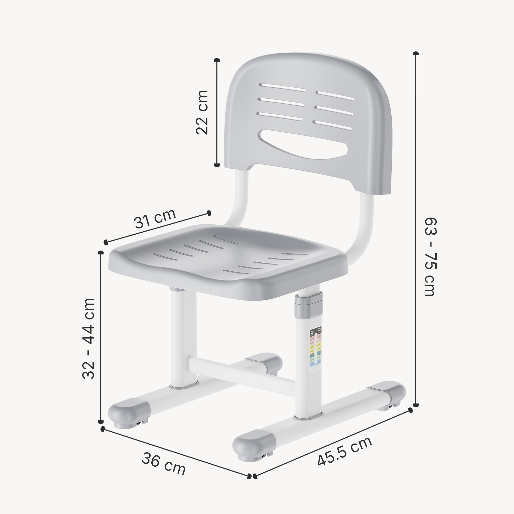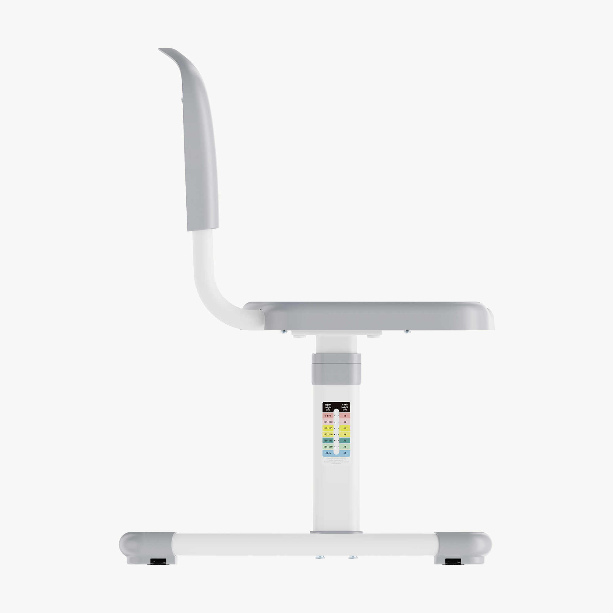 Dank der höhenverstellbaren Funktion wächst der Stuhl flexibel mit und passt sich verschiedenen Körpergrößen an. So sitzt Ihr Kind jederzeit bequem und ergonomisch am Schreibtisch oder Spieltisch.