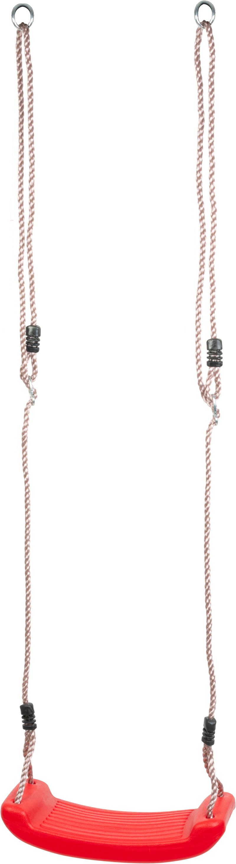 Detská červená plastová hojdačka je praktická, ľahko umiestniteľná takmer kdekoľvek vo vašej záhrade. Hojdačka nemá opierku a nemá ani prednú ochranu pred pádom, preto je potrebné na dieťa dávať pocelý čas pozor. Nosnosť hojdačky je 70 kg a jej rozmery sú 43 x 17 x 8,5 cm. Na oboch stranách sedacej časti sú pripevnené laná dlhé 2 m, s priemerom 10 mm. Je potrebné ich poriadne uviazať na miesto, kde chcete hojdačku mať. Uistite sa, že je pripevnená správne, nie príliš vysoko, a že nehrozí riziko poranenia.