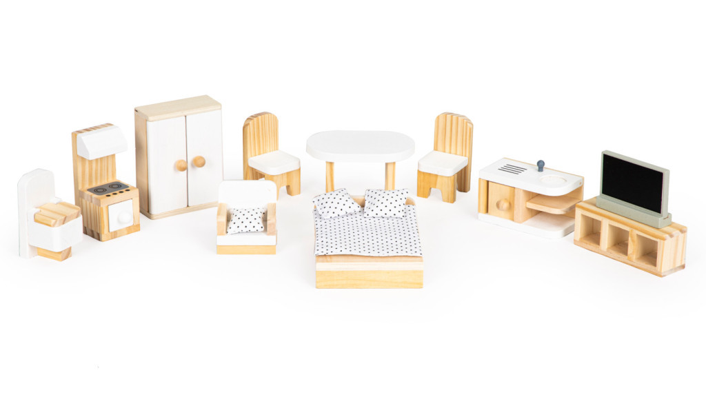 Setul include, de asemenea, un set de 10 piese de mobilier din lemn și alte articole, cum ar fi un aspirator, o chitară, o oglindă și o cușcă. Toate elementele pot fi îndepărtate și rearanjate liber, fără restricții.