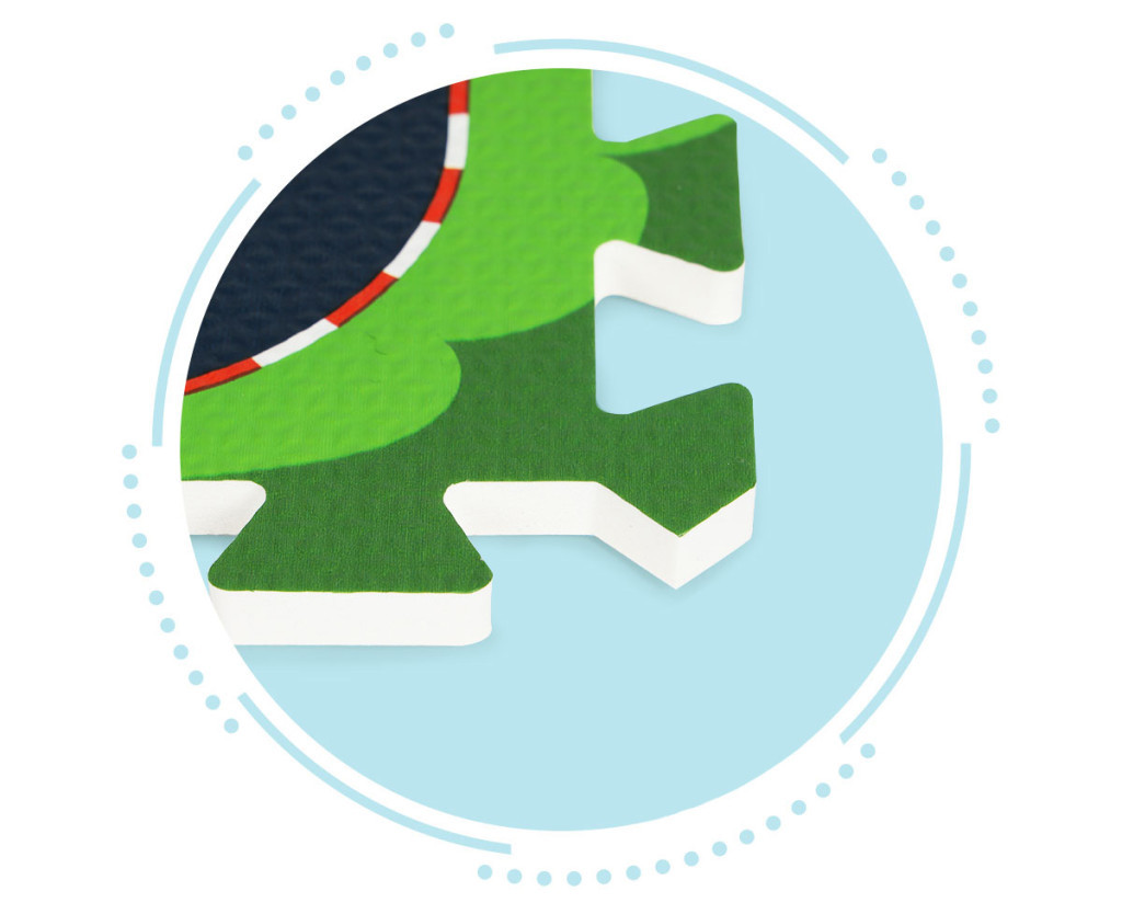 Covorașul este alcătuit din pătrate colorate cu „dinți” speciali pe margini, datorită cărora pot fi combinate în tot felul de moduri. Grosimea covorașului (1 cm) oferă o protecție adecvată împotriva căderii și îl face plăcut de moale. Covorașul are o textură specială antiderapantă și este complet sigur pentru copii.