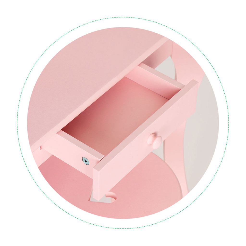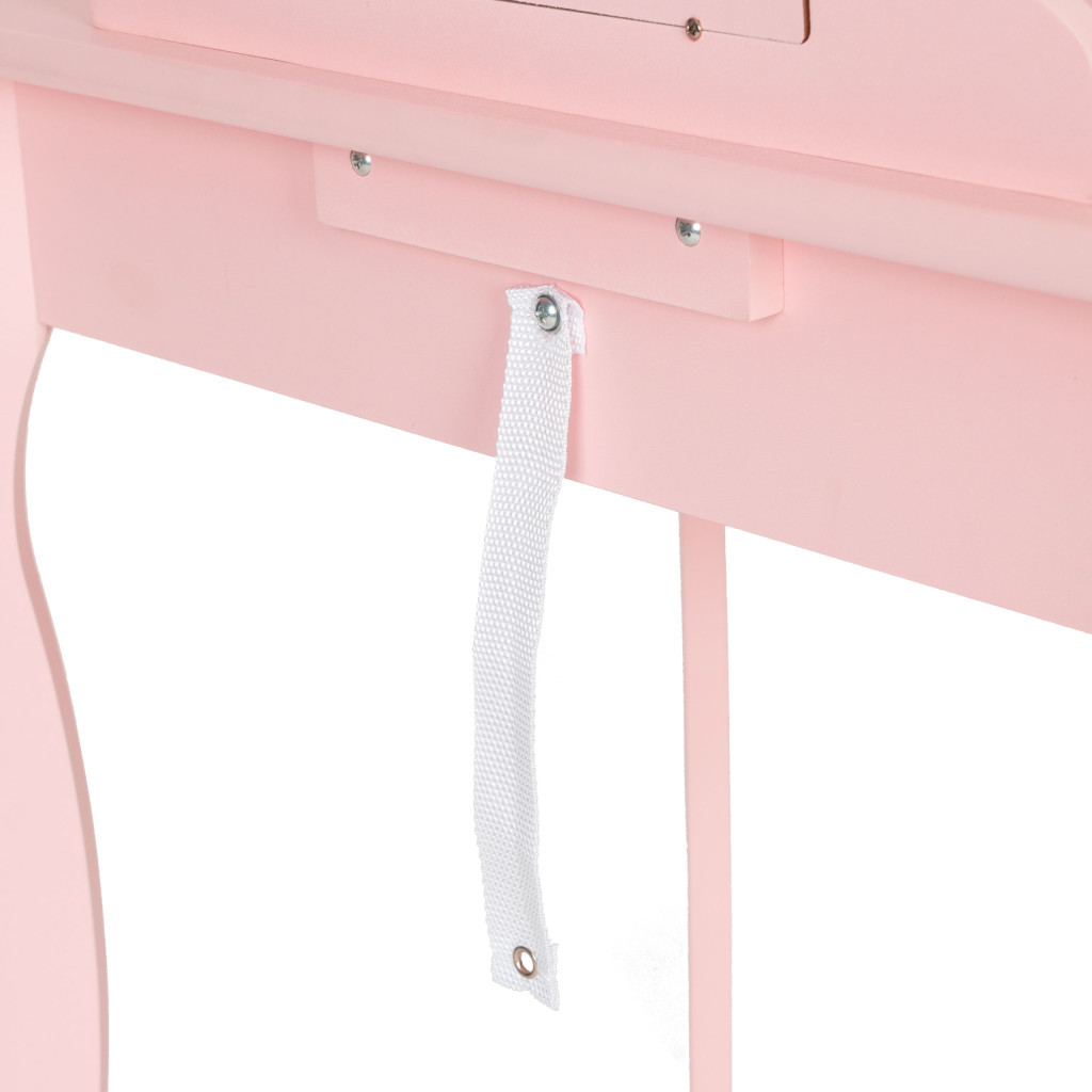 Masa de toaletă are și un sertar practic unde copiii își pot depozita comorile, bijuteriile sau echipamentele de joacă. Sertarul este ușor de deschis și închis , astfel încât copiii își pot organiza independent mica lume.