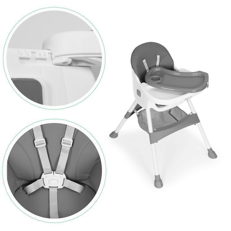 Scaunul înalt este alegerea perfectă pentru fiecare părinte și copilul lor - de la vârsta de 6 luni. Acesta facilitează mesele permițând copilului să stea la masă alături de adulți, ajutându-l să observe, să imite și să învețe comportamentul corect. Scaunul, cu designul său modern și funcțiile multiple, își îndeplinește perfect rolul, asigurând o poziție sigură și confortabilă. Cu tava sa lată, cel mic nu numai că poate mânca, ci și se poate juca, construi cuburi sau desena și se va îndrăgosti rapid de noua sa piesă de mobilier specială.