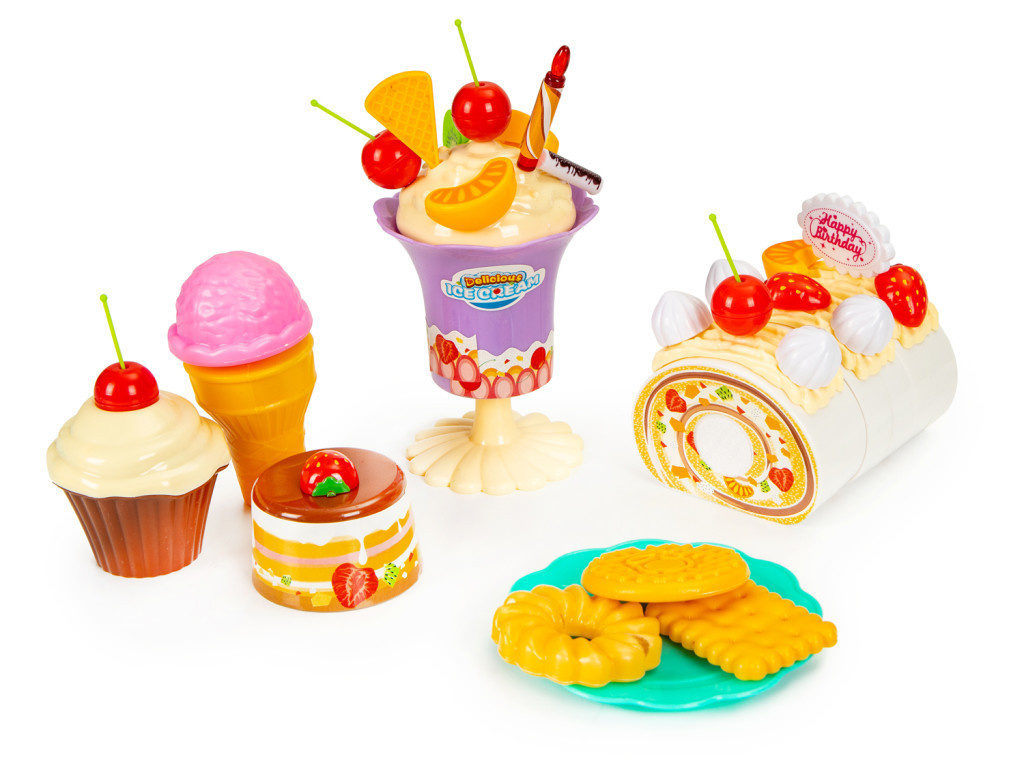- Fantasztikus készlet egy kis cukrászda, a torta tépőzárral van összekötve, így a gyermek "vághatja", majd az összes darabot újra összeillesztheti.