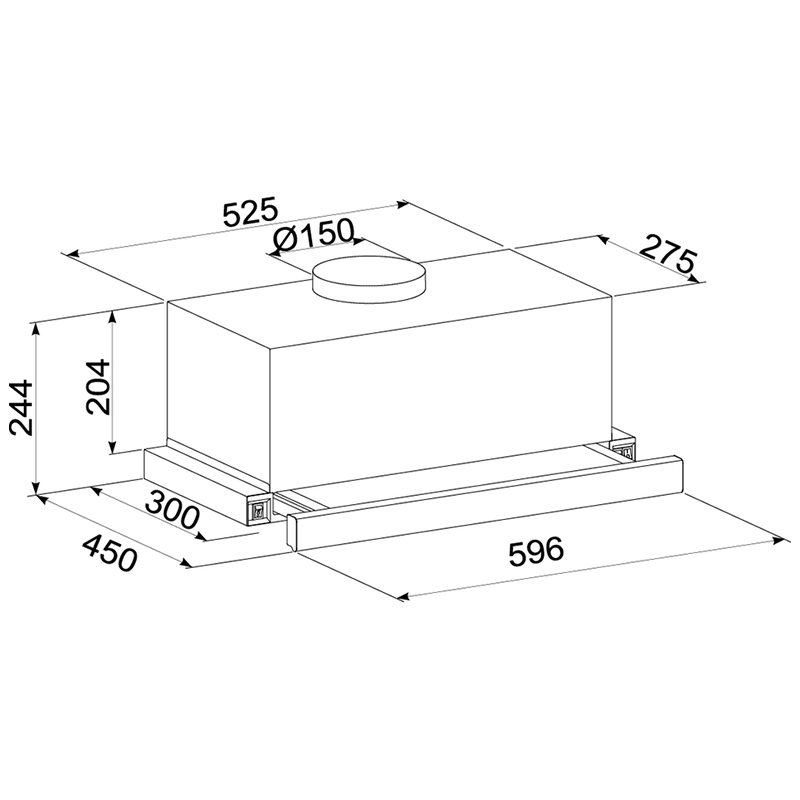Hota Telescopica Incorporabila Tornado Storm 1200 (60), 1 motor, latime 60 cm, 3 viteze, absorbtie 1200 m3/ora, Inox.