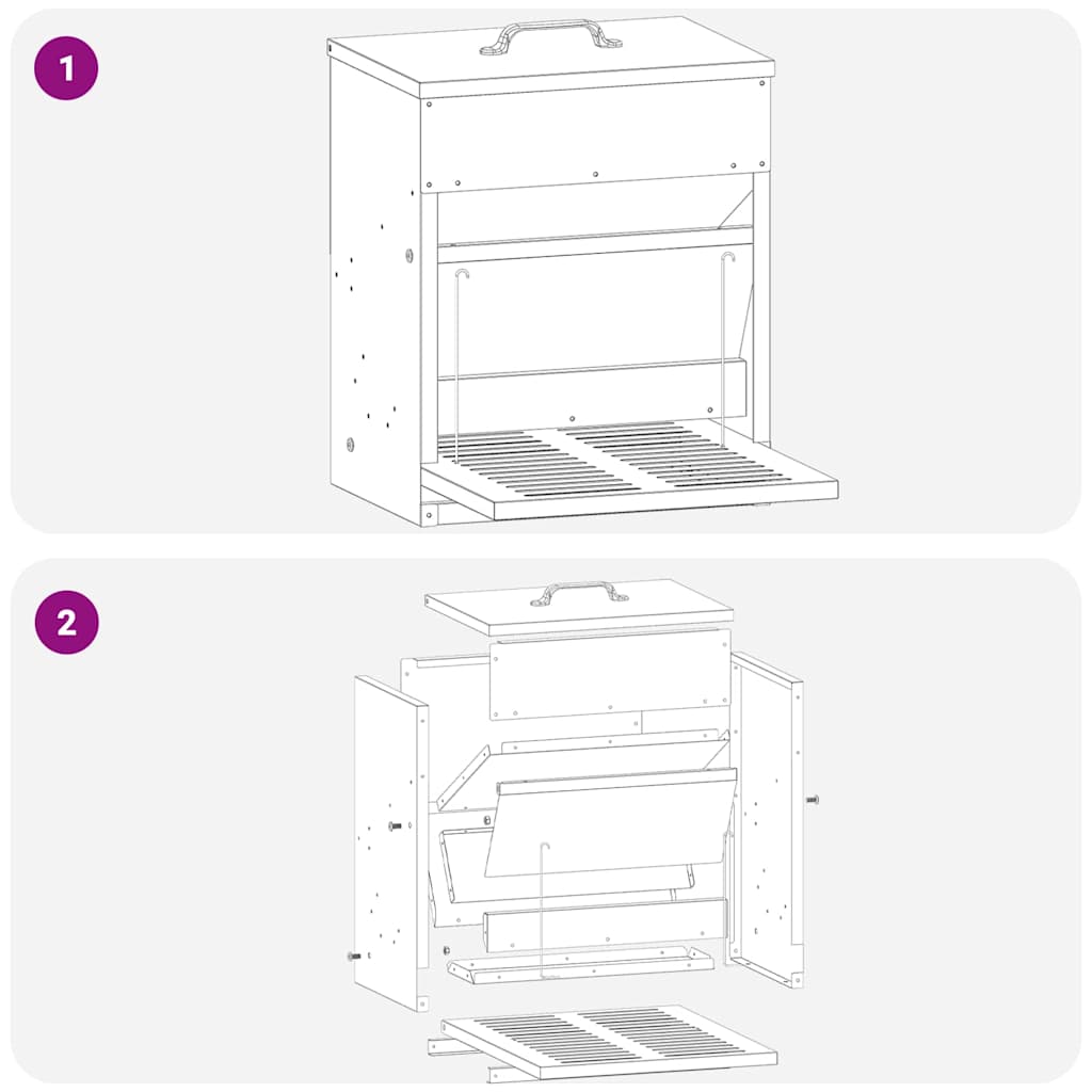 Design modern din oțel: Hranitoarea pentru găini cu picior e făcută din oțel robust, asigurând o construcție solidă care suportă utilizarea intensivă. Are o estetică modernă și protecție împotriva faptelor din exterior, fiind ideală pentru interior și exterior. Construcție durabilă: E făcută să reziste, greutatea și construcția sa o fac rezistentă împotriva animalelor de companie energice. Durabilitatea structurii o face perfectă pentru condiții exterioare sau zone aglomerate cu păsări. Mecanism de picior funcțional: Designul cu picior îi îndeamnă pe găini să se hrănească, ajutând la evitarea risipei și împiedicând dăunătorii să ajungă la hrană. Asta sprijină managementul hranei, promovând obiceiuri disciplinate de hrănire. Opțiuni versatile de amplasare: Se poate folosi atât în interior, cât și în exterior, așa că poți pune hranitoarea în grădina ta, pe terasă sau în orice zonă cu păsări. Poate fi amplasată oriunde, făcând-o super convenabilă pentru iubitorii de păsări care caută soluții eficiente pentru ferma lor. Plan de întreținere simplu: Ca să o menții în stare bună, doar șterge cu o cârpă uscată. Materialul rezistent la intemperii face întreținerea simplă, așa că te poți bucura de beneficiile ei fără bătăi de cap.- Culoare: Negru