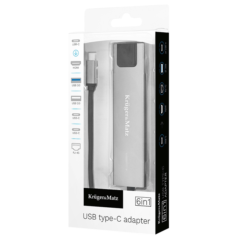HUB USB TIP C HDMI/2X USB3.0/2X USB TIP C/RJ4 EuroGoods Quality