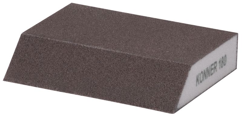 Skosená brúsna huba KONNER je určená na brúsenie sadrokartónov, kovov, plastov, dreva, náterov na tvarované alebo zakrivené aplikácie. Rozmery: 125x90x65x25 mm. Zrnitosť: G180 - vhodná na doleštenie povrchov.Huba je vyrobená z AluOxidu.