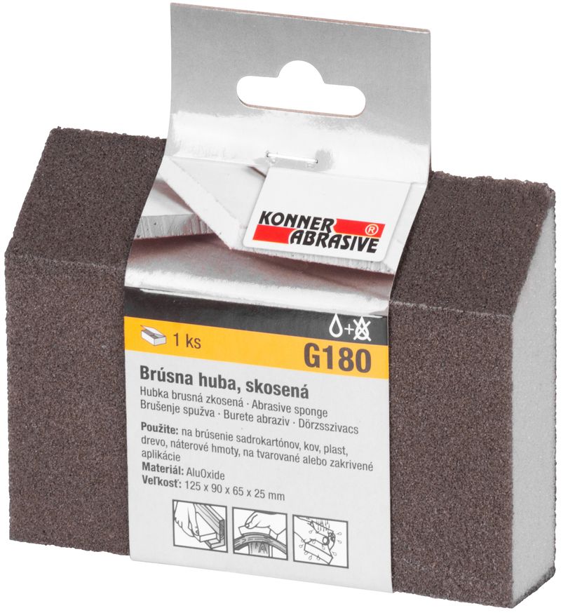 Huba KONNER G180, brúsna špongia, 125x90x65x25 mm, skosená
