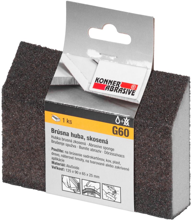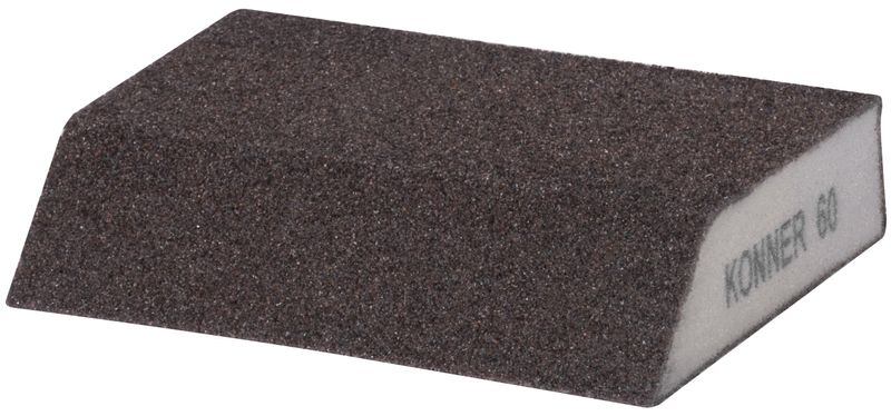 Skosená brúsna huba KONNER je určená na brúsenie sadrokartónov, kovov, plastov, dreva, náterov na tvarované alebo zakrivené aplikácie. Rozmery: 125x90x65x25 mm. Zrnitosť: G60 - vhodná pre hrubé povrchy a predprípravu.Huba je vyrobená z AluOxidu.
