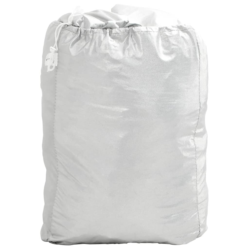 - Acoperire argintie pentru izolare termică: Suprafața argintie a husei de mașină reflectă mai multă lumina soarelui și razele UV, menținând mașina mai rece pe vreme caldă. Acest lucru ajută la protejarea interiorului mașinii dvs. în cazul daunelor cauzate de căldură.