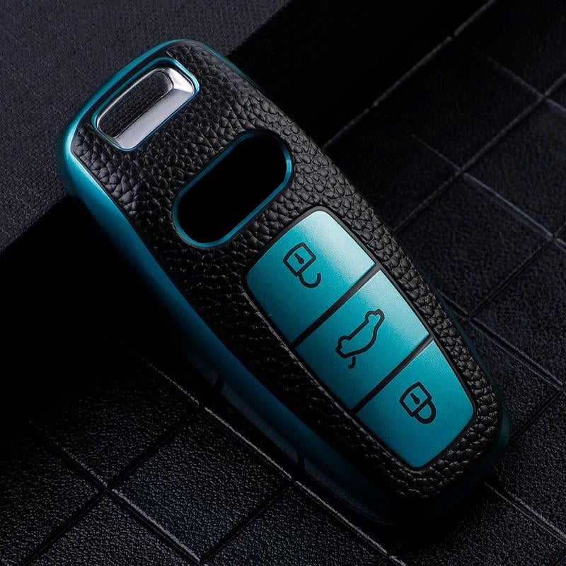 Husă cheie Audi SmartKey din TPU, aspect piele, albastru (Q8/A8/A6 C8)