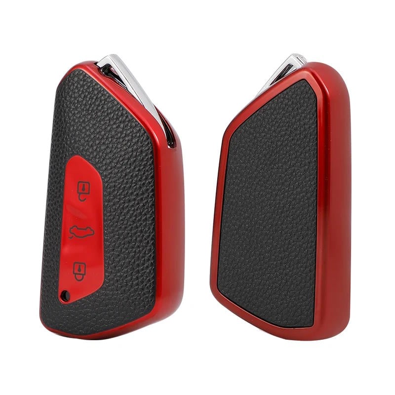 Husă cheie auto SmartKey pentru VW Golf 8/Skoda, TPU aspect piele, roșie