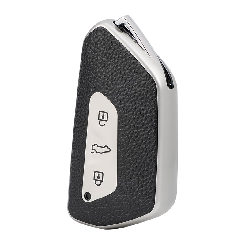 Husă cheie auto VW Golf 8 SmartKey 3 butoane, TPU cu aspect piele, gri