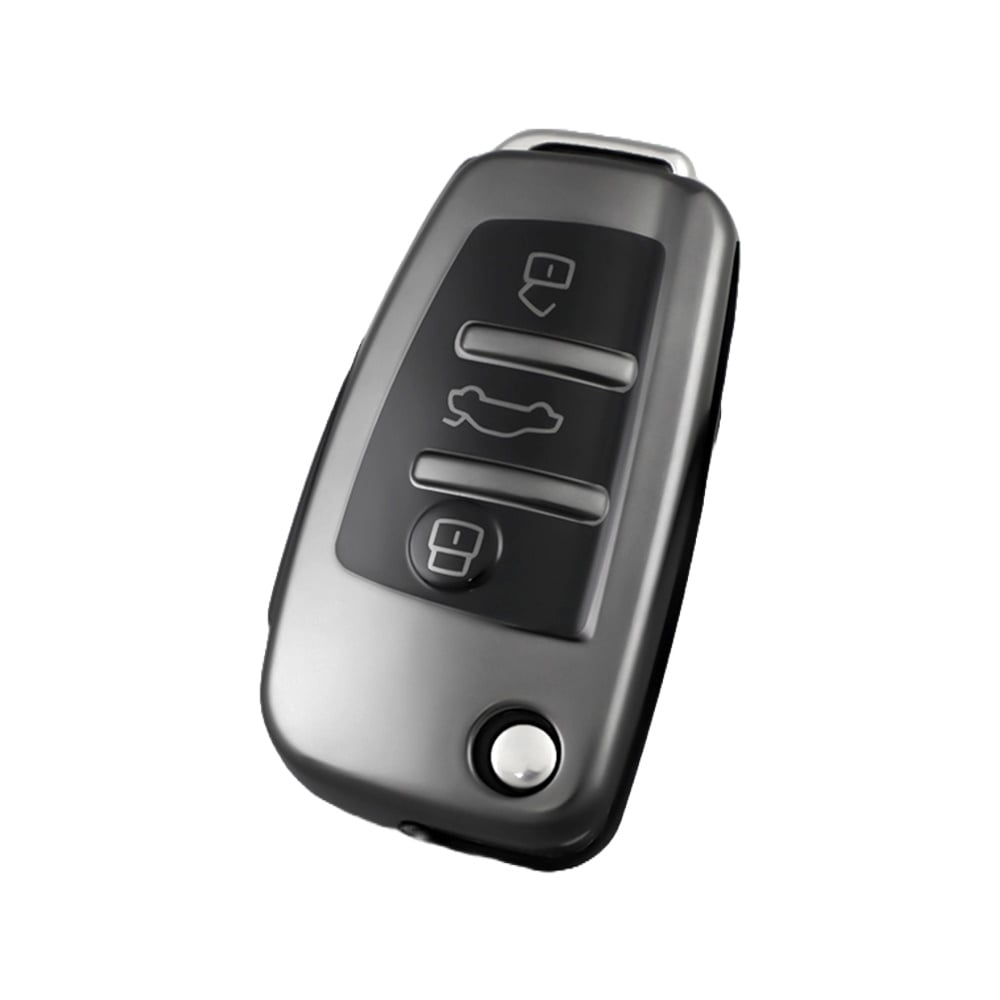 Husă cheie briceag Audi cu 3 butoane, TPU premium, gri închis