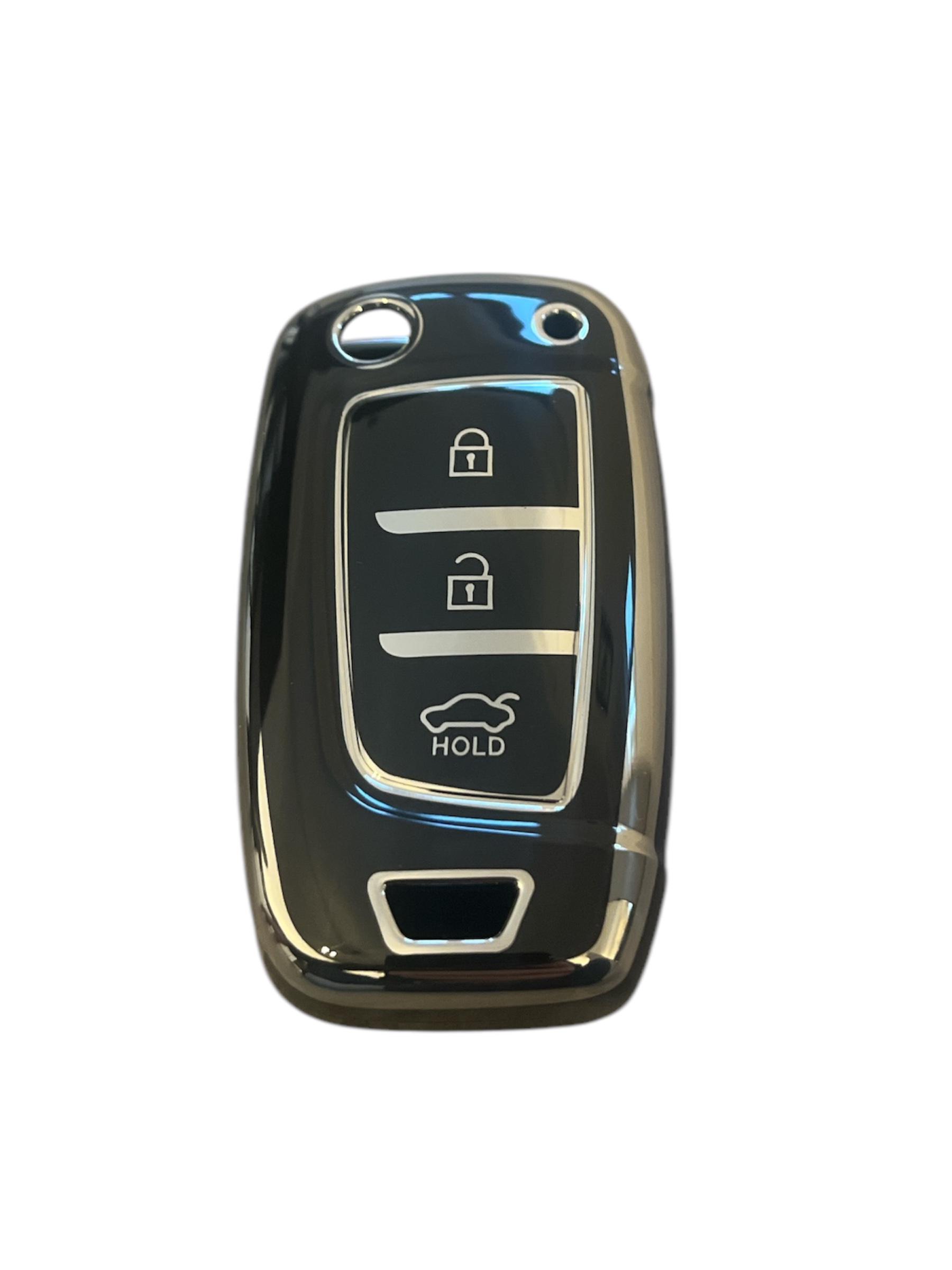Husa Cheie Briceag Hyundai Tucson, Elantra, Accent, Solaris, Kona, Verna, I30, 2017+, 3 Butoane, Tpu, Negru cu contur Silver AutoProtect KeyCars