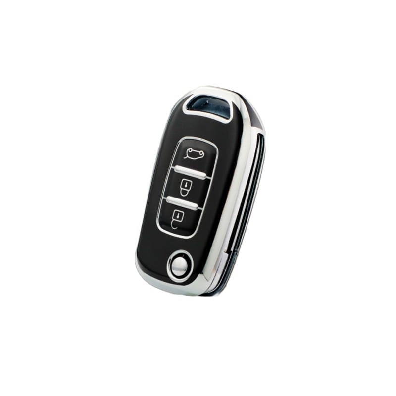 Husă cheie briceag Renault Megane 4/Kadjar/Clio, 3 butoane, TPU negru-silver