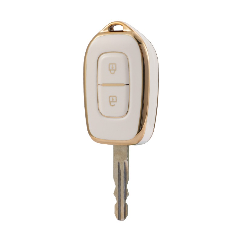 Husa Cheie Dacia Logan,Sandero, Duster,Dokker, Spring 2 Butoane, TPU, Design, Alba cu contur Auriu AutoProtect KeyCars