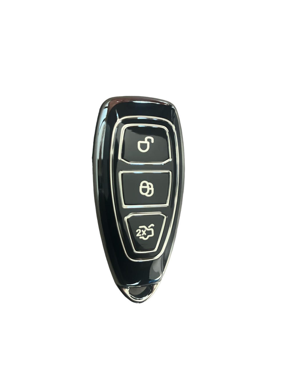 Husă cheie Ford Kuga Smartkey 3 butoane, TPU negru cu contur silver