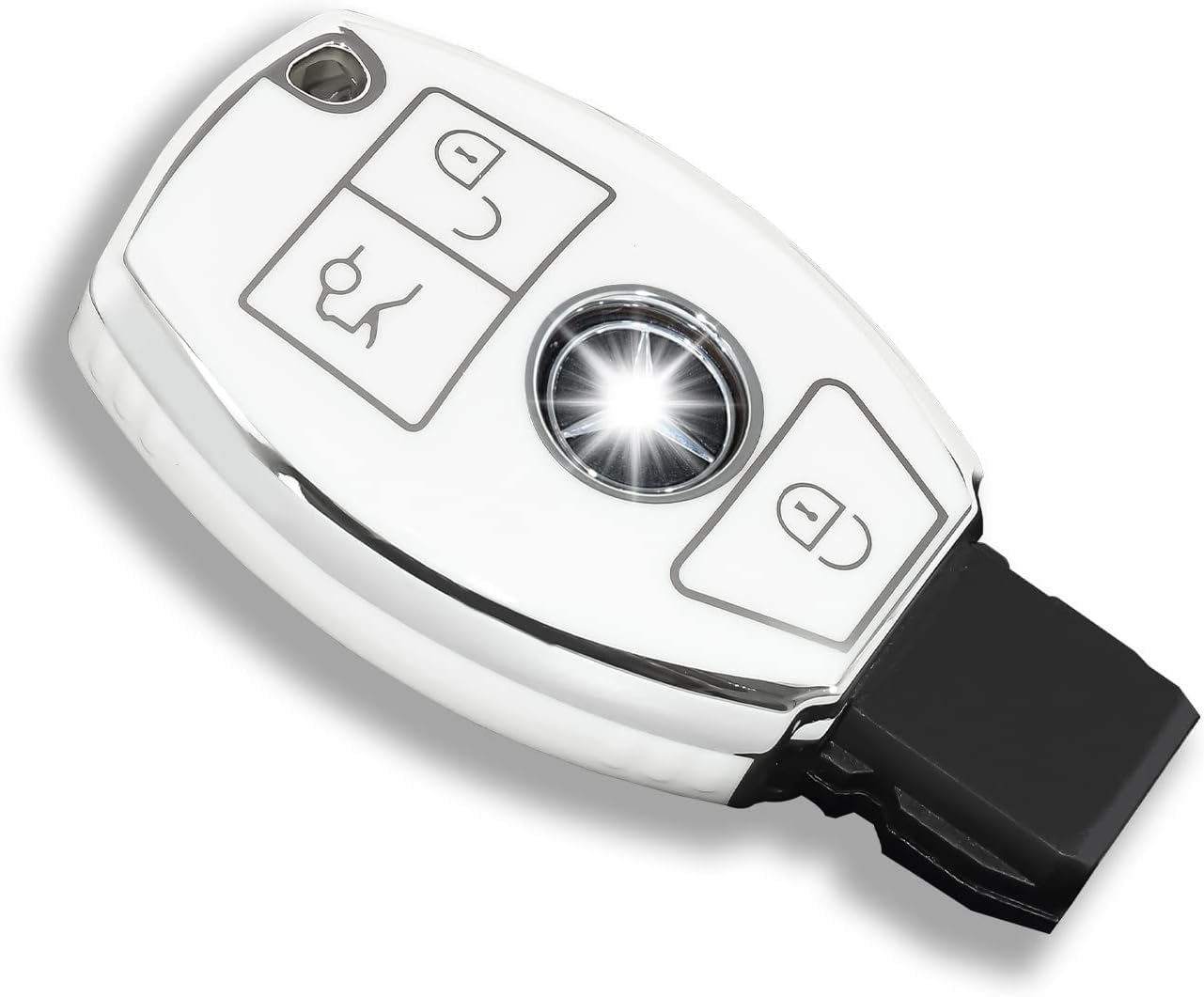 Husă cheie Mercedes-Benz Smartkey 3 butoane, TPU alb cu contur argintiu