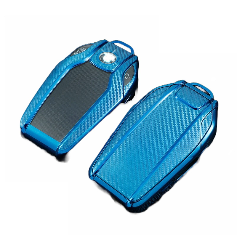 Husă cheie smart BMW cu display, TPU carbon albastru, Seria 7/X5/X6