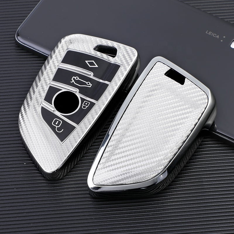 Oferă-i cheii tale un plus de protecție și un look modern cu această husă cheie Smartkey BMW cu finisaj carbon, în nuanța silver. Combinația de materiale TPU+PC asigură o prindere plăcută în mână și o rezistență excelentă la uzură, păstrând în același timp accesul ușor la butoane.