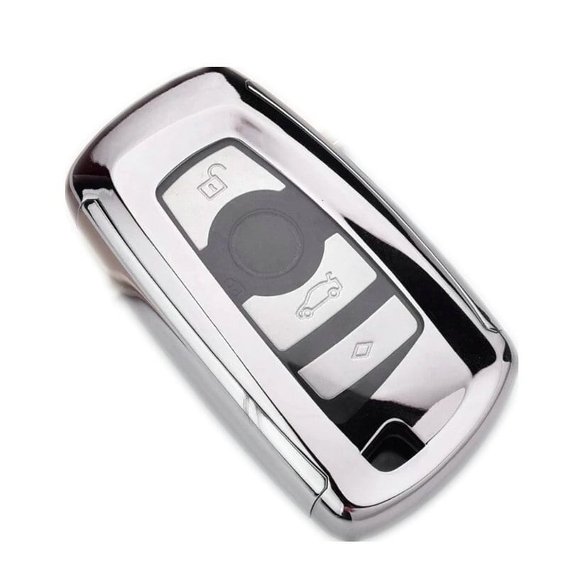 Husă cheie smartkey compatibilă BMW Seria F, 3/4 butoane, silver, TPU+PC