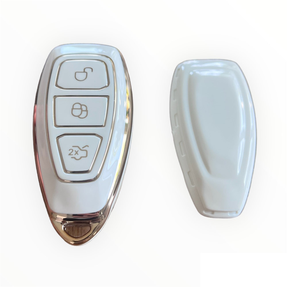Husă cheie smartkey compatibilă Ford Kuga, TPU albă cu contur auriu, 3 butoane