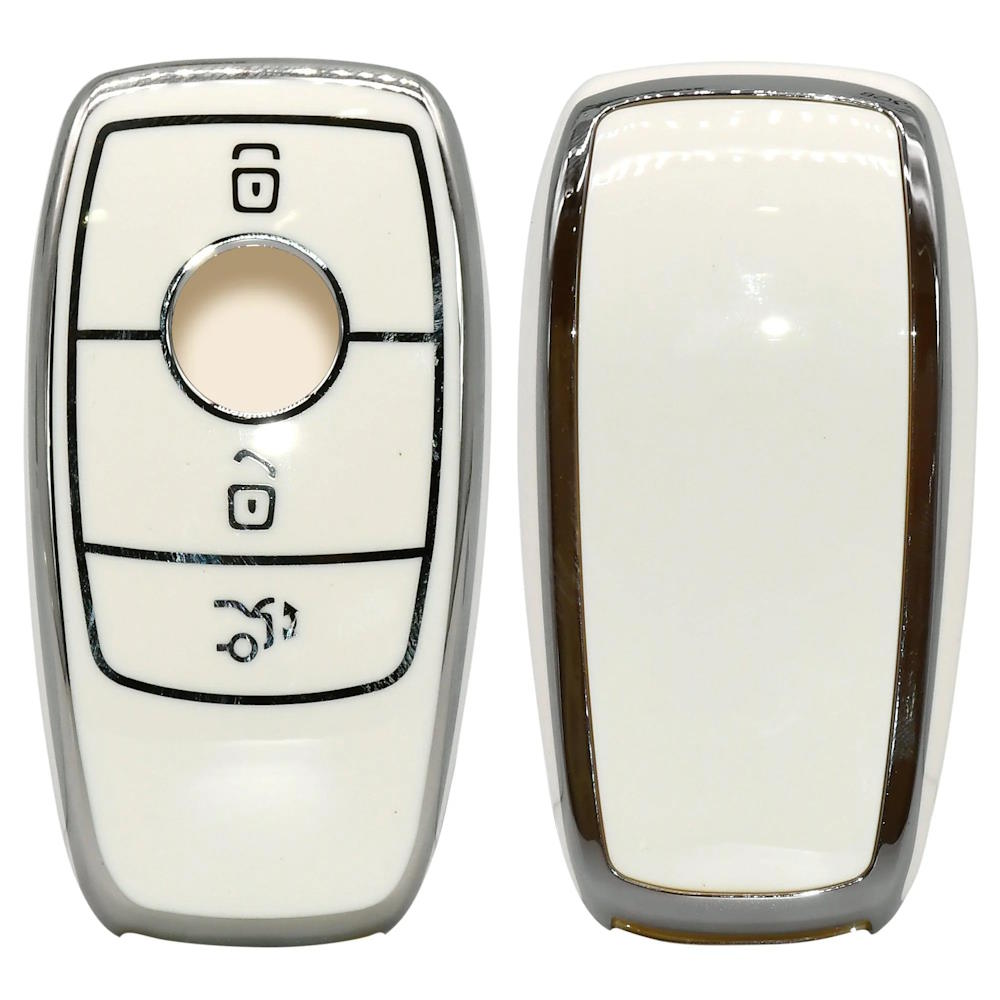Husa Cheie Smartkey, Mercedes Benz 3 Butoane, Tpu, Model Nou, Alba cu contur silver AutoProtect KeyCars