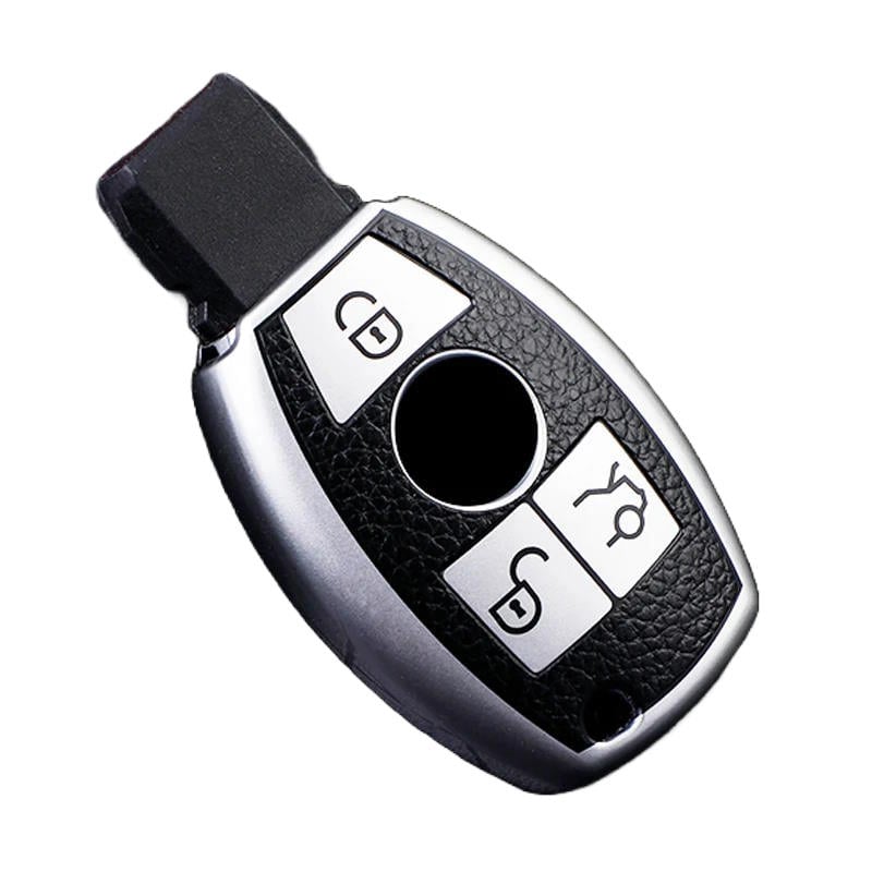 Husă cheie Smartkey pentru Mercedes-Benz, 3 butoane, TPU aspect piele, silver