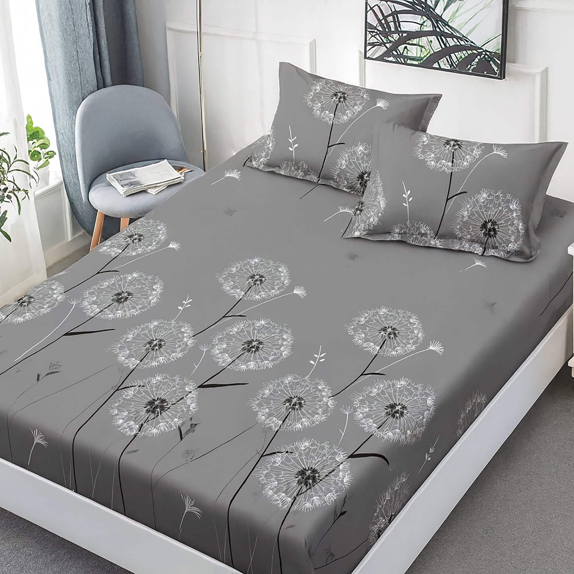 Husă de pat din finet cu elastic 160x200 cm și 2 fețe pernă, Papadii gri