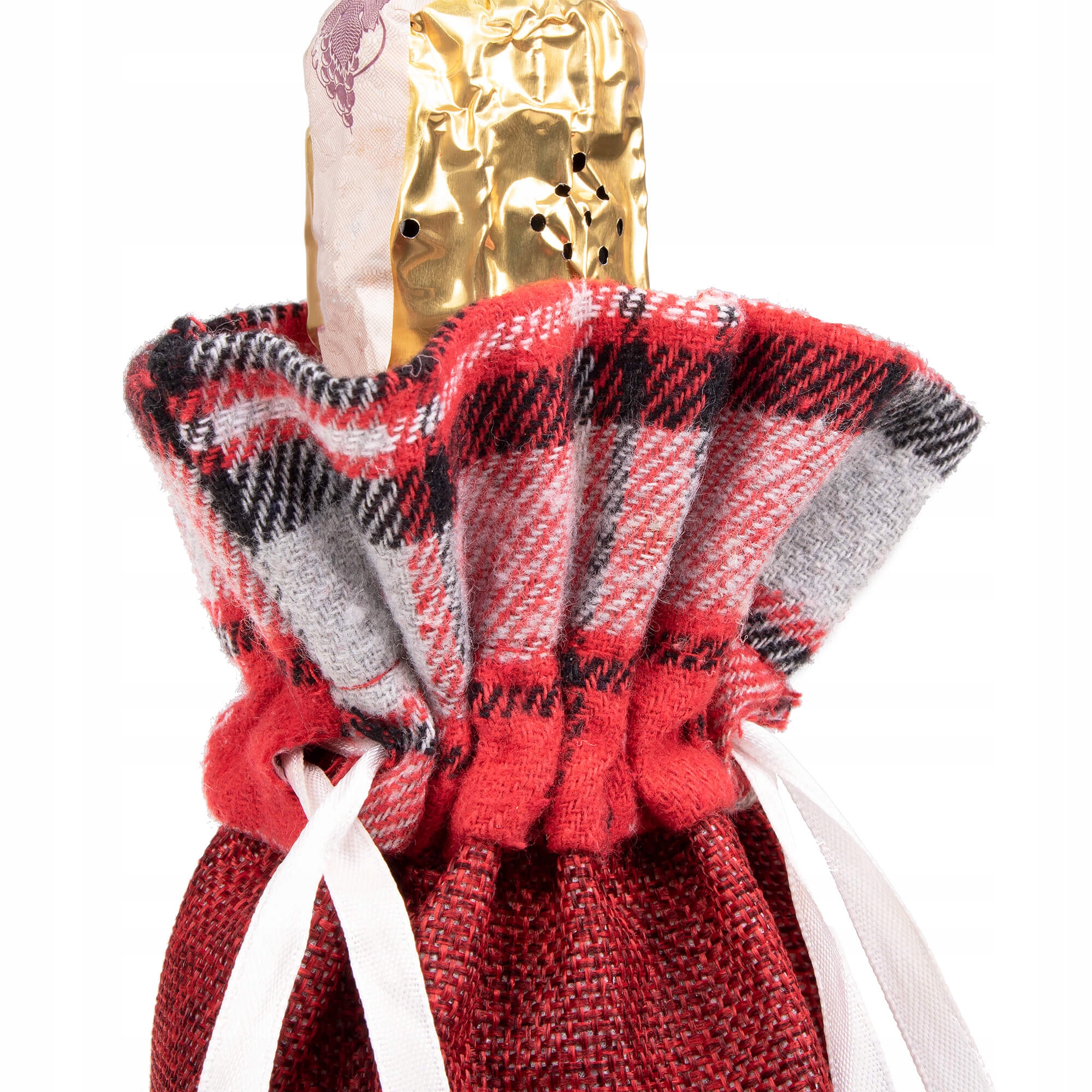Utilizare: Introdu sticla în husă și așaz-o pe masa festivă, lângă brad sau într-un coș-cadou. Poate fi folosită pentru a decora sticle de vin, prosecco, șampanie sau alte băuturi oferite cadou.