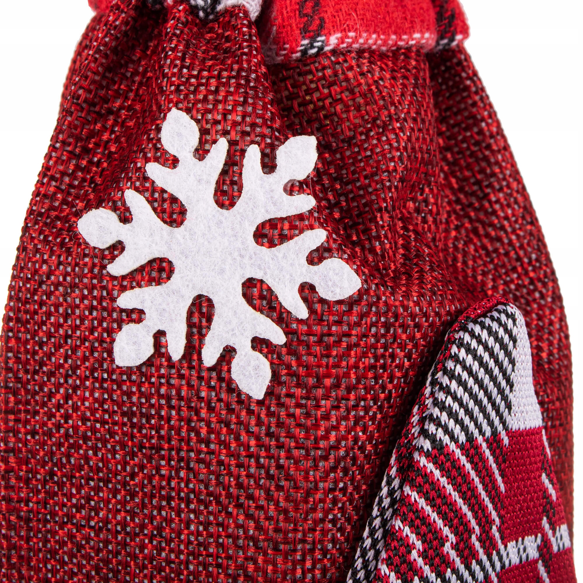Designul în nuanțe de roșu, cu detalii textile și aspect jucăuș, creează o atmosferă caldă și primitoare. Această decorațiune de Crăciun pentru sticle este potrivită atât pentru mesele festive în familie, cât și pentru petreceri, evenimente tematice sau aranjamente decorative de iarnă.