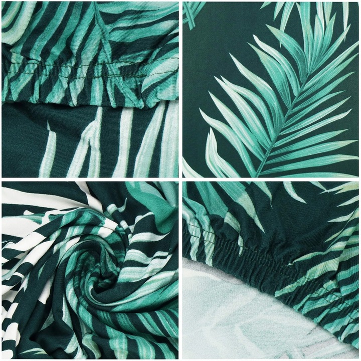 Datorită benzii elastice cusute în partea inferioară, husa se fixează bine și rămâne stabilă în timpul utilizării. Designul cu frunze tropicale oferă un plus de stil și se potrivește perfect în interioare moderne, fresh sau inspirate din natură.