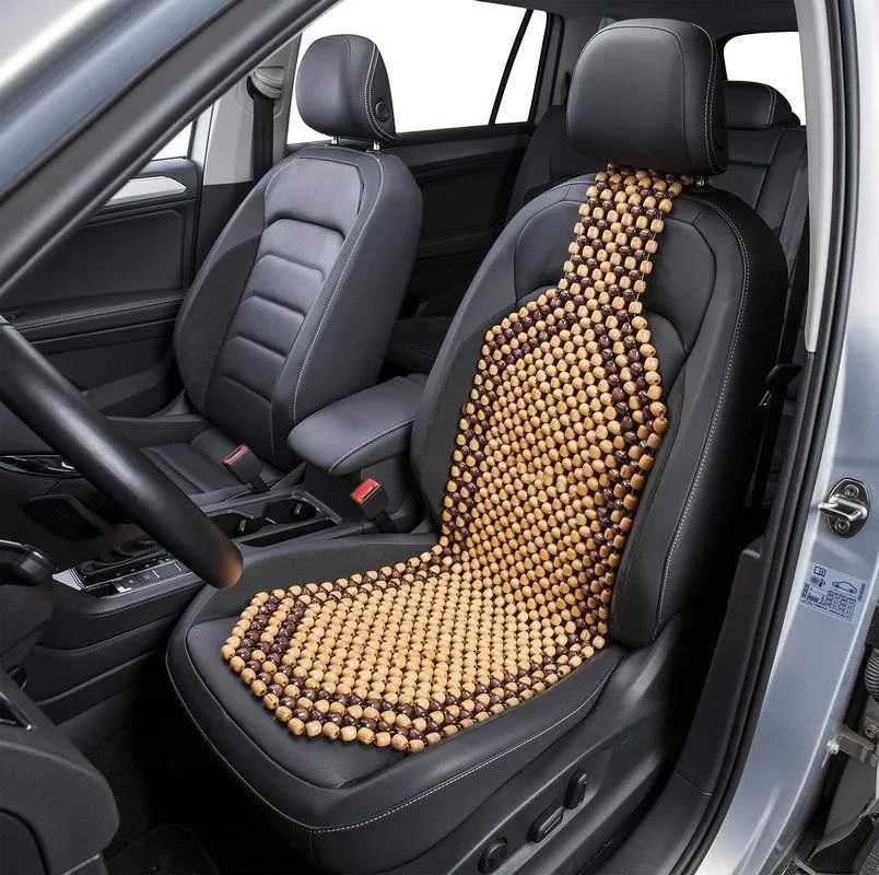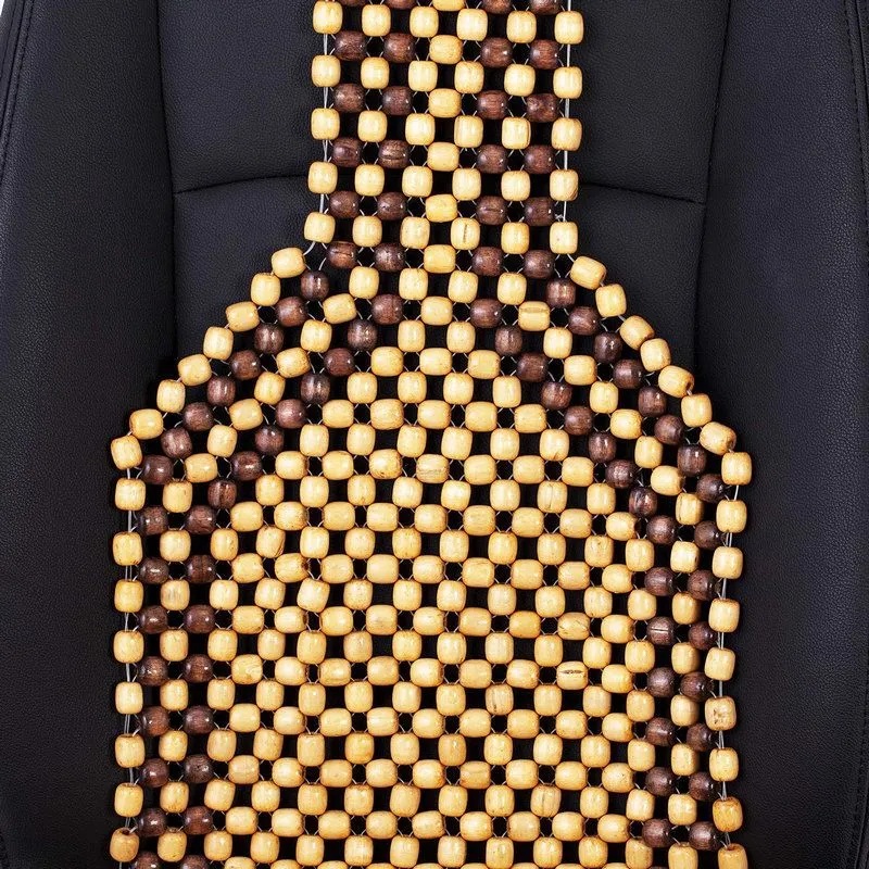 Husa pentru scaun auto cu bile de masaj din lemn, culoare Bej/Maro