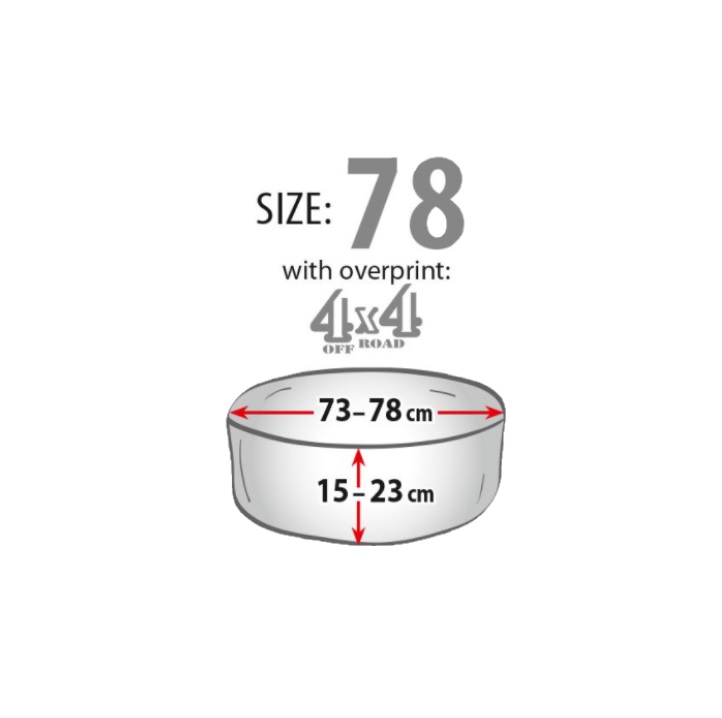 Modelul cu inscriptie 4x4 Off-Road imbina utilitatea cu designul atractiv. Se monteaza usor si rapid, fixarea fiind realizata cu ajutorul unui snur elastic, pentru o prindere buna pe roata de rezerva.