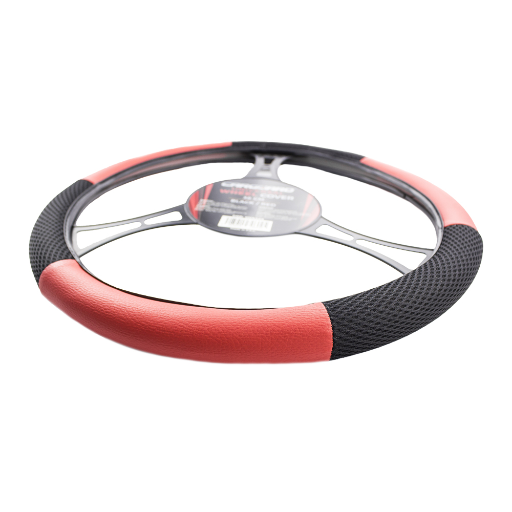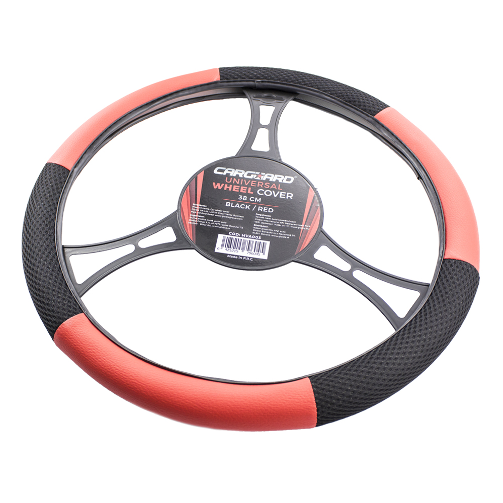 Husă volan auto Carguard 38 cm, negru/roșu, piele ecologică antiderapantă
