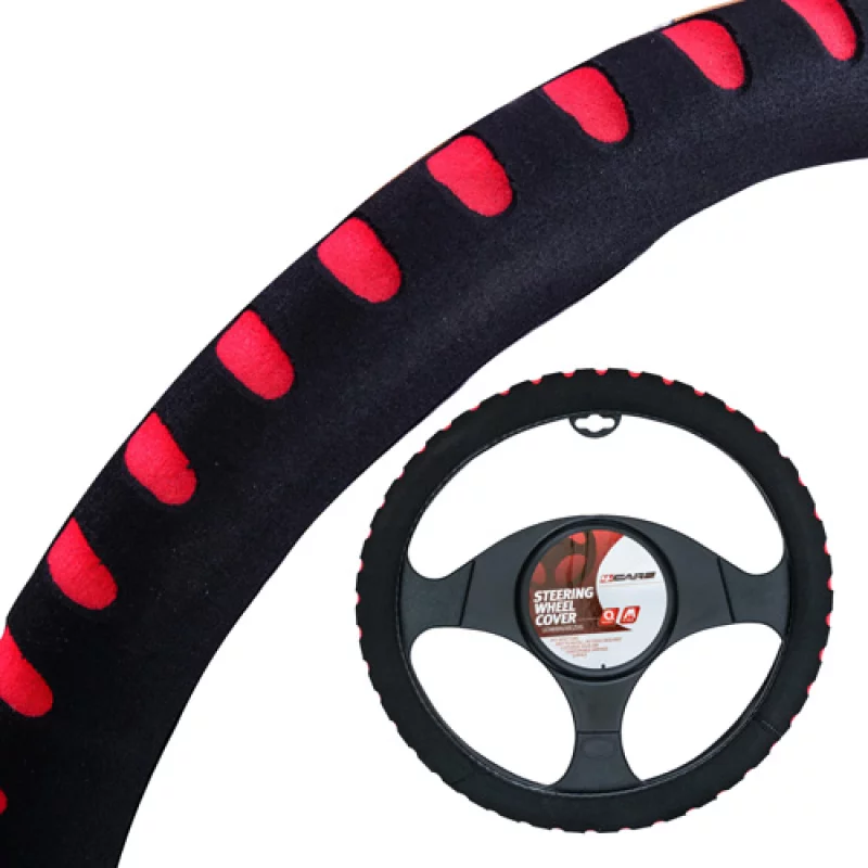 Adauga mai mult confort si control la fiecare drum cu aceasta husa volan auto 4Cars, realizata din burete aderent si potrivita pentru volane cu diametrul de 37-39 cm. Combinatia de culori negru/rosu ofera un aspect sportiv, iar materialul moale ajuta la o prindere mai sigura si mai confortabila in timpul condusului.