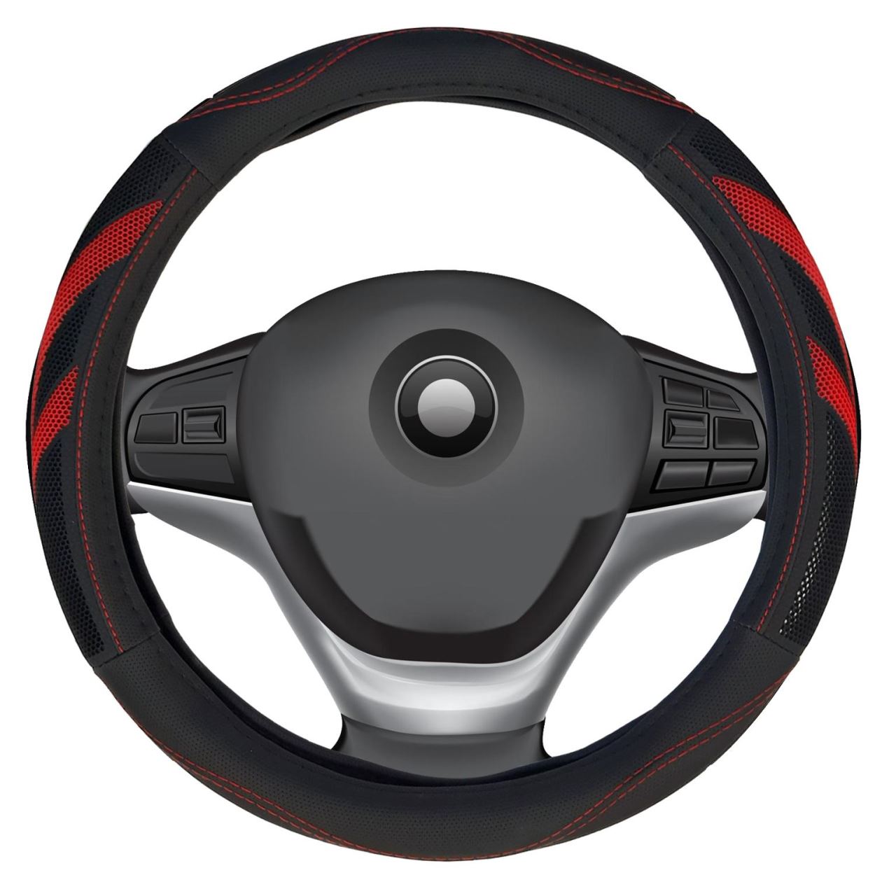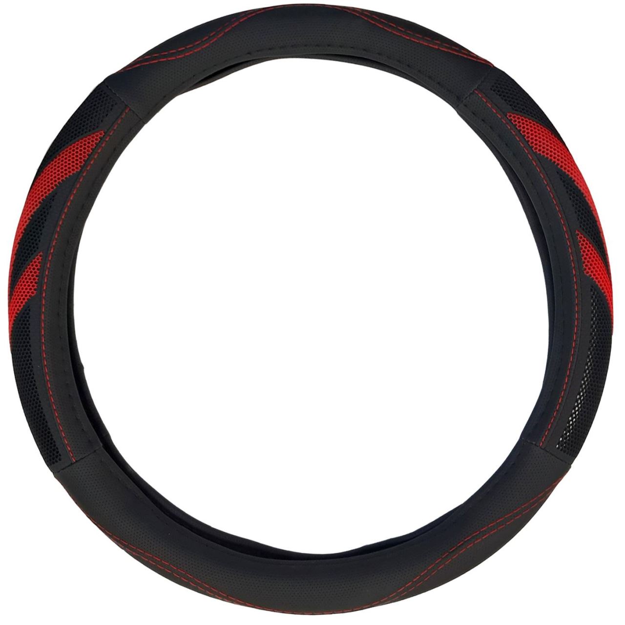 Husa volan auto Siegbert din piele ecologica, microperforata, negru cu rosu