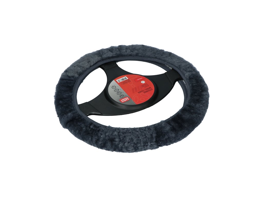 Husa volan blana din lana neagra diametru 37-39cm AutoDrive ProParts