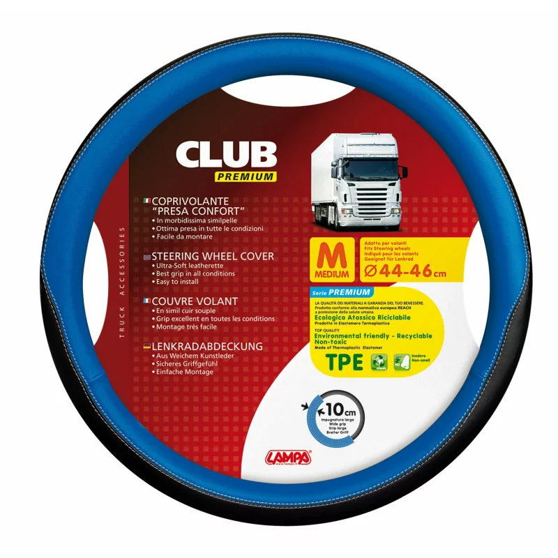 Utilizare: recomandata pentru volane de camion cu diametrul intre 44 si 46 cm. Se aplica direct pe volan, prin fixare manuala, pentru o acoperire stabila si confortabila.