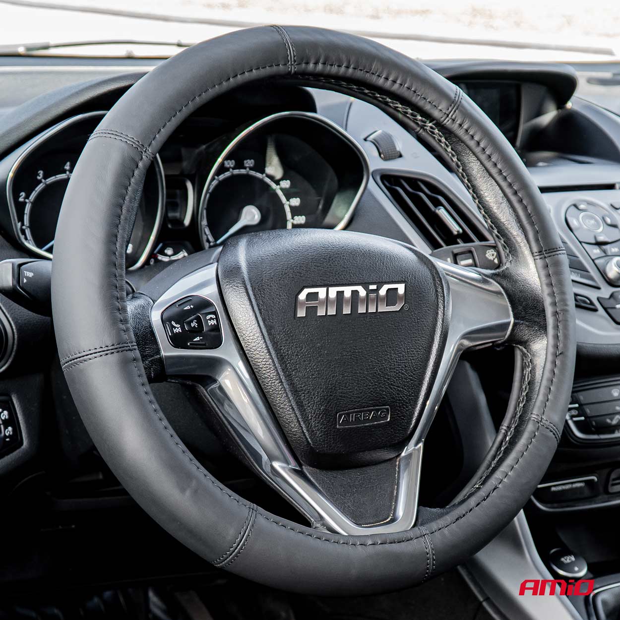 Husa volan din Piele Naturala, culoare Neagra, marime XL (volan 41-43cm), AVX-AM03548 FAVLine Selection