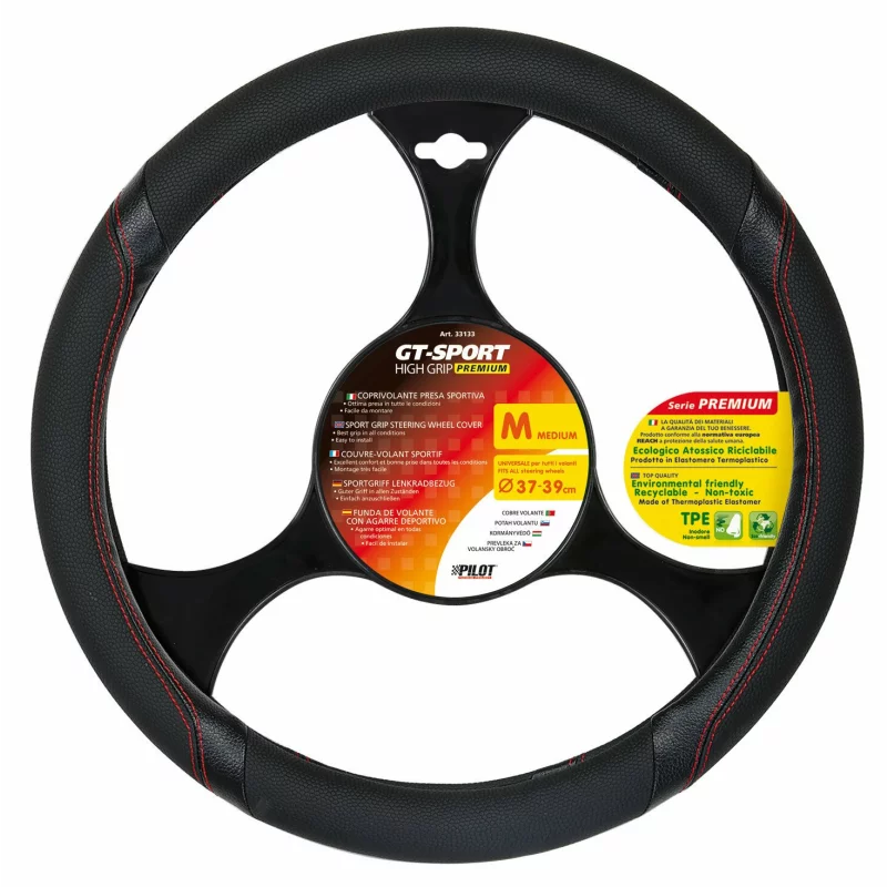 Husă volan GT Sport Premium mărimea M, 37-39 cm, negru cu roșu