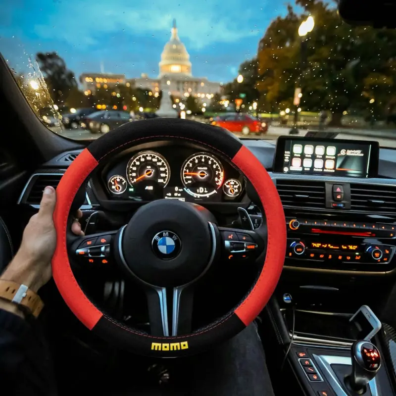 Husa volan Momo Easy, microfibra, negru cu rosu Automobile ProTravel