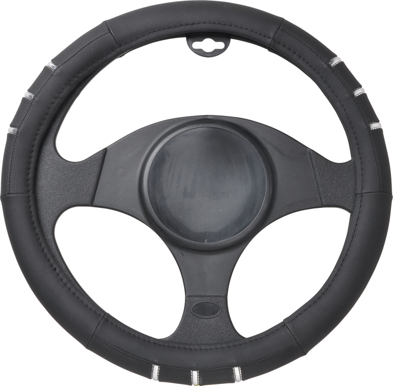 Husa volan negru cu crom , material cauciucat, diametru 37-39 cm AutoDrive ProParts