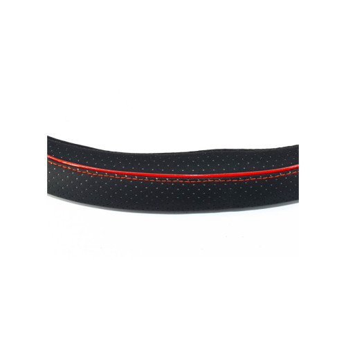 Husă volan sport din imitație piele, mărimea M 37–39 cm, negru cu cusătură roșie